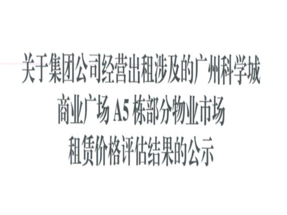 关于集团公司经营出租涉及的广州科学城商业广场A5栋部分物业市场 租赁价格评估结果的公示