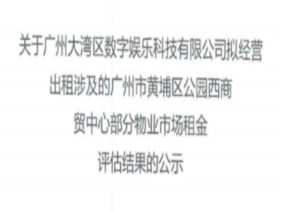 关于广州大湾区数字娱乐科技有限公司拟经营出租涉及的广州市黄埔区公园西商贸中心部分物业市场租金评估结果的公示